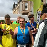 An der Spitze des HM-Feldes von über 1000 Startren setzten sich schon früh 3 Läufer ab, darunter auch unser Schnellster: Tobias Linn. Tobias lief ein taktisch kluges Rennen und dominierte in Hälfte 2 das Rennen klar. Mit deutlichem Vorsprung bog er in die lange Zielgerade in der St. Wendeler Bahnhofstaße ein und wurde dort von zahlreichen Vereinsmitgliedern unter den Zuschauern am Schlossplatz mit großem Applaus empfangen. Die Zeit von 1:17:07 lag über dem eigentlich anvisierten Ziel, aber das Rennen war von Taktik geprägt und das Heimrennen zu gewinnen – das hat was !!! Superleistung !