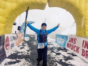 Tanja kommt nach sehr guten 5:17:25 – Platz 25 – ins Ziel und freut sich, dass ihr der letzte Schlußanstieg durchs Schneefeld erspart bleibt. Klasse !