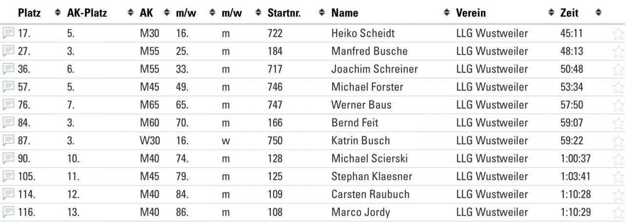 Beim 10 km Lauf setzte sich in der Vereinswertung Heiko in einer tollen Zeit vor Manni (3. AK) und Joachim durch. Bernd und Katrin schafften als jeweils 3. den Sprung aufs Podium. Michael und Carsten absolvierten mit Bravour ihren ersten Lauf für unsere LLG. Klasse !