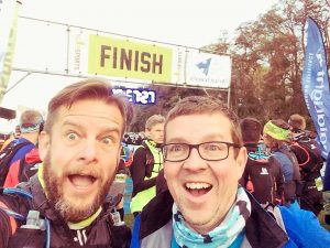 Marco Egger war am Samstag mit seinem Kumpel Tom auf Trailtour. In Voeren (Belgien) ging es auf die 58km – Strecke des Beartrail. Der leicht profilierte Kurs (1250 Höhenmeter) führte durch flaches Grenzland zwischen Belgien und Holland hin und her. Das Wetter war trocken und frisch (4 Grad beim Start). Nur 3 VPs , dafür aber mit teils sehr guten Waffeln. Eine perfekte Streckenmarkierung sorgte für sorgloses Laufen. Marco landete bei seinem 50. Ultralauf nach 6:40:20 im Ziel. Platz 36 Gesamt. Zur Belohnung kam auch noch die Sonne raus. Und beer gabs beim beartrail auch noch…