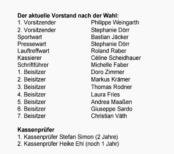 Neu hinzu kamen Michelle Faber, Andrea Maaßen und Giuseppe Sardo, so dass ich der Vorstand nun wie folgt zusammensetzt: