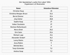 Spitzenreiter im Kilometersammeln für die LLG war Christian, der 45 km gesammelt hat, gefolgt von Tina und Bernd mit jeweils 32,4 km.