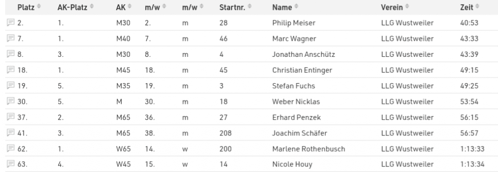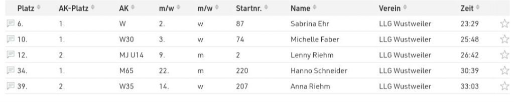 Über 5 km konnten auch unsere erwachsenen Starter glänzen. Unsere schnellsten Starterinnen waren Sabrina und Michelle, die auf Platz 2 und 3 im Gesamtfeld landeten. Beeindruckend war die Leistung von Lenny (WKU10!), der nach dem Schülerlauf noch nicht genug hatte, gerade auch noch den 5er dranhängte und so Mama Anna unterwegs noch super motivieren konnte. Hanno war zum ersten Mal für die LLG im Einsatz und lieferte auf der nicht ganz einfachen Strecke ein tolles Ergebnis ab.