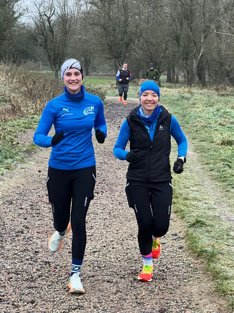 Obwohl es sich um eine eigentlich einfache, asphaltierte Strecke entlang der Nied handelte, stellte das Wetter die Teilnehmer vor einige Herausforderungen. Die Strecke war zu großen Teilen vereist, was die Läufer insbesondere an den Steigungen ganz schön ins Schlingern brachte. Trotzdem kamen (soweit bekannt) alle sturzfrei durch und rutschten gut ins neue Jahr.