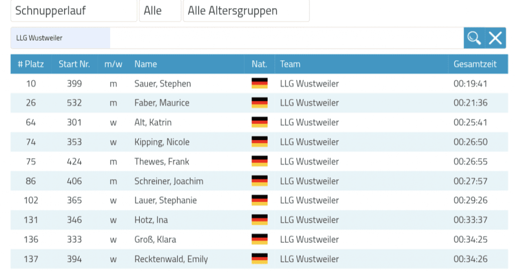 In der Volkslauf-Wertung verpasste Philippe als schnellster nur knapp das Gesamtpodest. Noch knapper war es bei Laura, die im Gesamtfeld auf Platz 2 landete, den Gesamtsieg aber nur um 3 Sekunden verfehlte. Dafür gewannen beide klar ihre Altersklasse, ebenso wie Markus, Felix und Marlene. Platz 2 in der AK ging jeweils an Selina, Jörg und Elias, Katrin sicherte sich Platz 3.