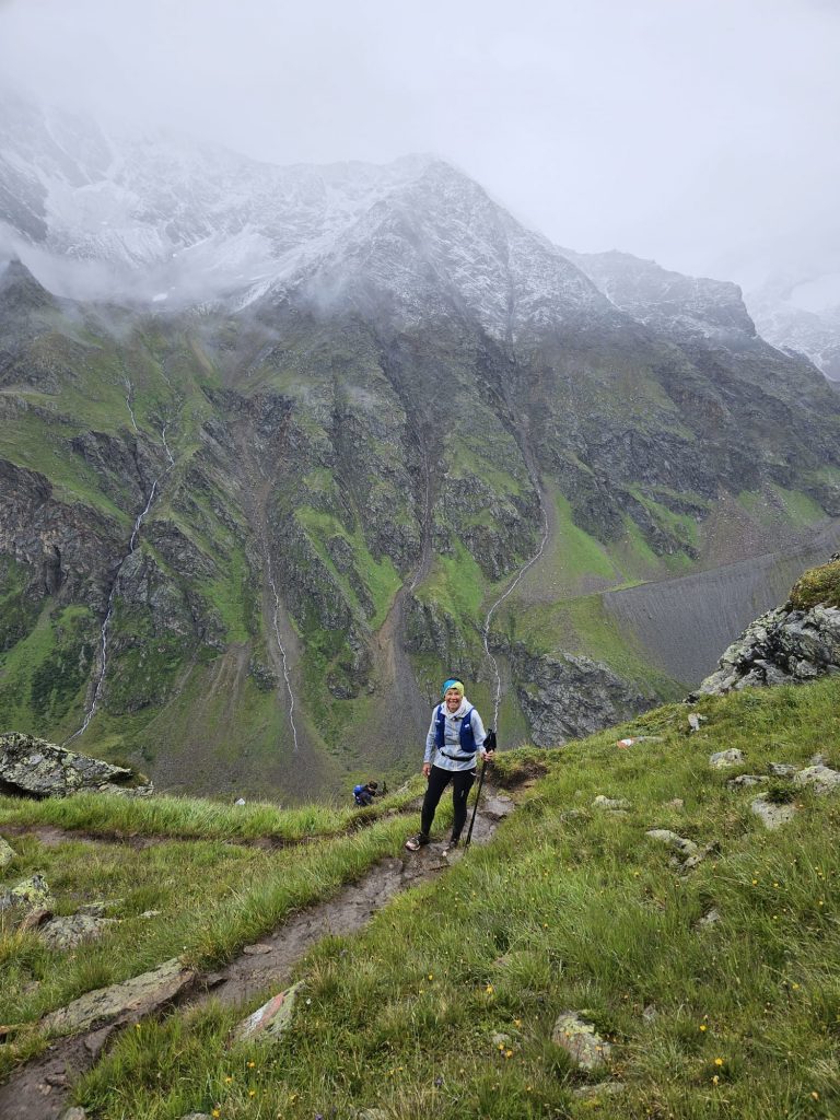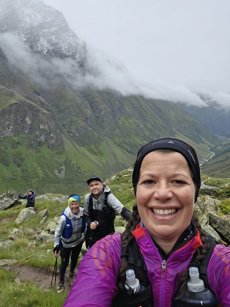 Celine Scheidhauer, Tobias Scheidhauer und Marlene Rothenbusch, die sich für den Taschachferner Trail – 27 km mit ca. 1300 hm – entschieden hatten, hatten weniger Glück mit dem Wetter. Schon im Startblock Regen.