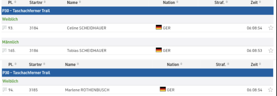 Ab dem Taschahaus hörte es dann zum Glück auf zu regnen und von dort führte die Strecke noch ca. 10 km bergab zuerst über Serpentinen und dann über einen breiten Fahrweg. Das war für unser Trio, welches die gesamte Strecke gemeinsam unterwegs war, endlich wieder laufbar und so hatte man zumindest gegen Ende noch etwas mehr Spaß, bevor nach 06:08:53 h das Ziel erreicht war.