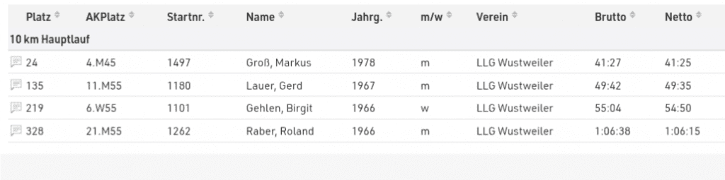 Auf der 10 km-Strecke waren es sogar mehr als 300 Läuferinnen und Läufer. Schnellster LLGler war Markus, der sich nach dem flotten Wettkampf am Vortag mal ein bisschen schonen durfte, eine AK-Platzierung aber trotzdem nur knapp verpasste.