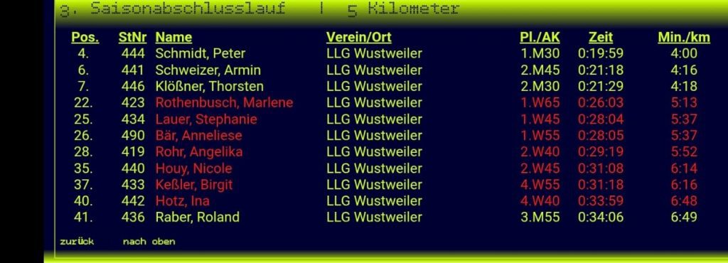 Nach einer kurzen Weihnachtspause meldet sich die Redaktion mit den Berichten zu den Veranstaltungen der vergangenen Wochen zurück. Wir starten mit dem Saisonabschlusslauf unserer Frrunde des LC FunRun Urexweiler. Bei dieser Veranstaltung wurde nicht nur deren Vereinsmeisterschaft über 5 km ausgetragen, auch für die anderen Läufer war es die perfekte Gelegenheit, sich vor Weihnachten noch einmal richtig auszupowern. Peter blieb als einziger Läufer mit einer Punktlandung noch unter 20 Minuten und machte sich mit einer neuen persönlichen Bestzeit schon mal ein vorgezogenes Weihnachtsgeschenk, ebenso wie Armin, Thorsten, Stephie und Angelina. Im Anschluss an den Lauf läutete man bei einer geselligen Kofferraumparty gemütlich die Weihnachtswoche ein.