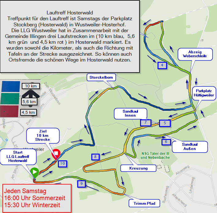 In Zusammenarbeit mit der Gemeinde Illingen hat die LLG Wustweiler drei feste Strecken im Hosterwald ausgeschildert: