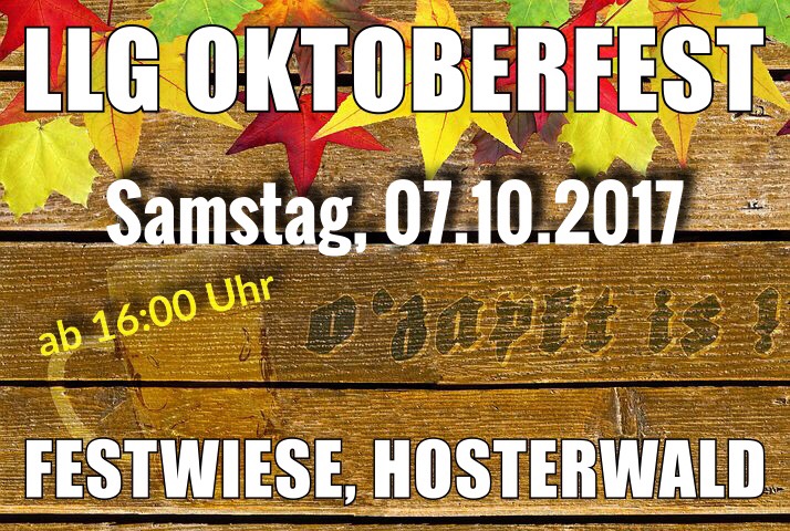 Die LLG Wustweiler lädt alle Freunde, Gönner und Mitglieder mit Familie zum diesjährigen LLG-Oktoberfest ein. Unser Lauftreff wird daher am Samstag, 07.10.2017 auf 15:00 Uhr vorverlegt. Ab 16:00 Uhr beginnen die Feierlichkeiten