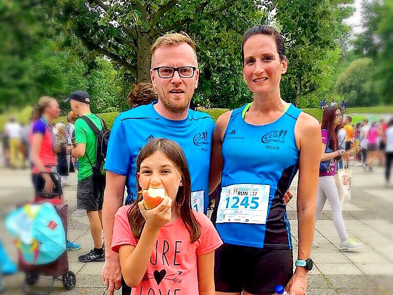 Podiumplatz im Olympiapark Nicole Becker und Andreas Holweck haben am Sonntag in München die 10 km-Strecke des bavarian-runs absolviert. Schon dass Einlaufen gab einen Vorgeschmack auf die wellige Strecke (2