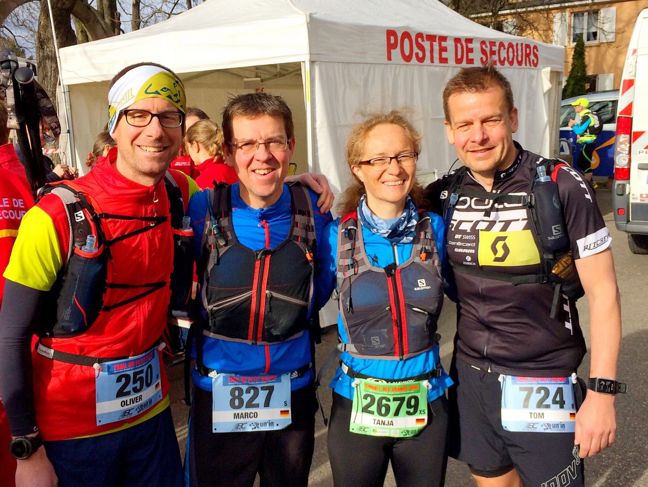 3 blaue in den Bergen Am Sonntag schickte die LLG Wustweiler eine kleine Werbetruppe für den eigenen 6-Stundenlauf nach Rouffach ins südliche Elsass. Ein Trailparadies. Tanja absolvierte am Sonntag ab