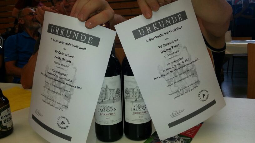 Am Pfingssonntag 08.06.2014 startete der TV Quierschied um 10:30 Uhr seinen Volkslauf über 10km nahe der Lauftreffhütte am Eingang zum Saarkohlewald. 4 LLG Läufer gingen auf die hügelige Waldstrecke und