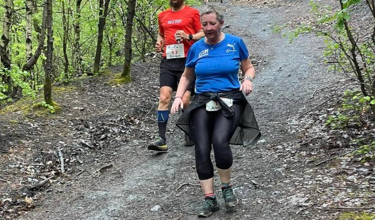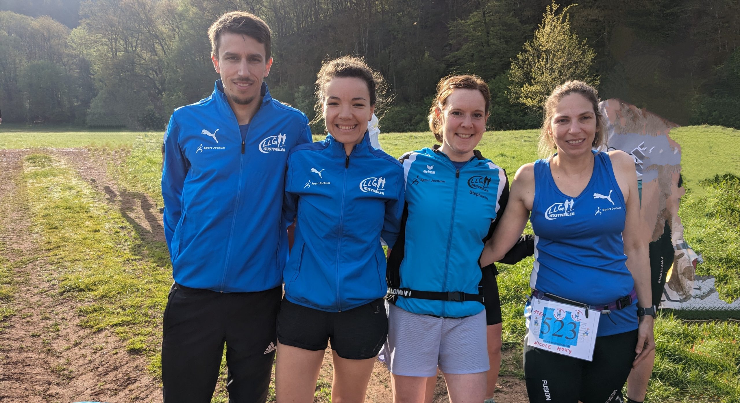 Dreifachsieg am Bärenfels Eine entspannte Stimmung herrschte beim Start der 17. Auflage des 1. Mai-Trails, bevor Robert Feller die etwa 76 Teilnehmer auf die Strecken über den Bärenfels schickte. Mit