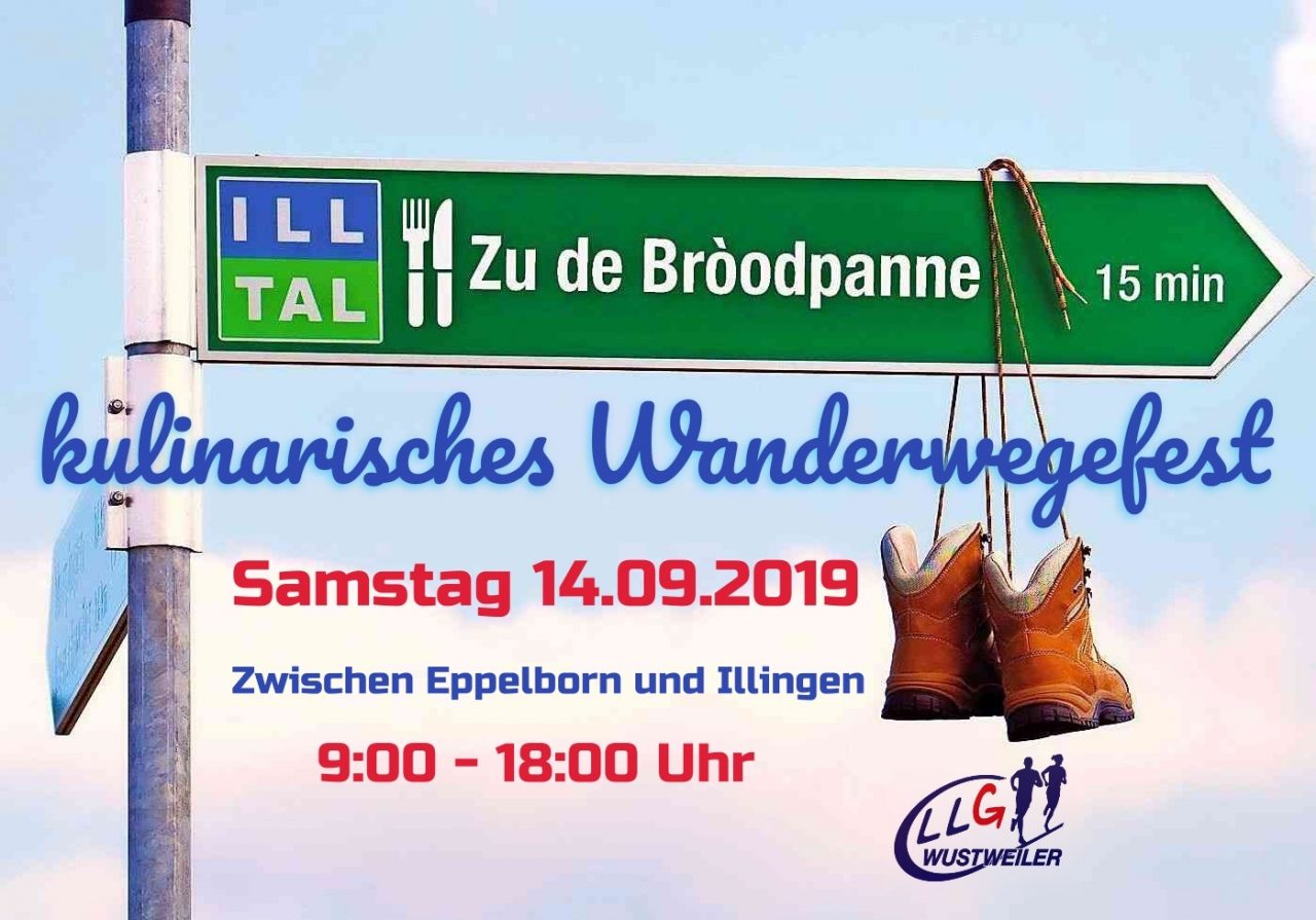 Einladung zum Laufen/Wandern/Schlemmen Am Samstag, 14.09.2019 findet zwischen 9:00 – 18:00 Uhr wieder die kulinarische Schlemmerwanderung zwischen Illingen und Eppelborn und/oder umgekehrt statt. Die ca. 21 km lange und bestens markierte Strecke kann in