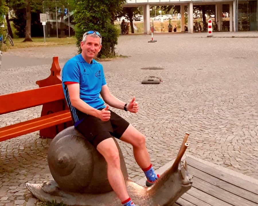 Hitzeschlacht im Schwarzwald Jörg Dresen hat auch im Urlaub stets das LLG-Shirt parat. So geht er am Freitag Abend knapp 14 km nördlich von Freiburg “best dressed” an den Start