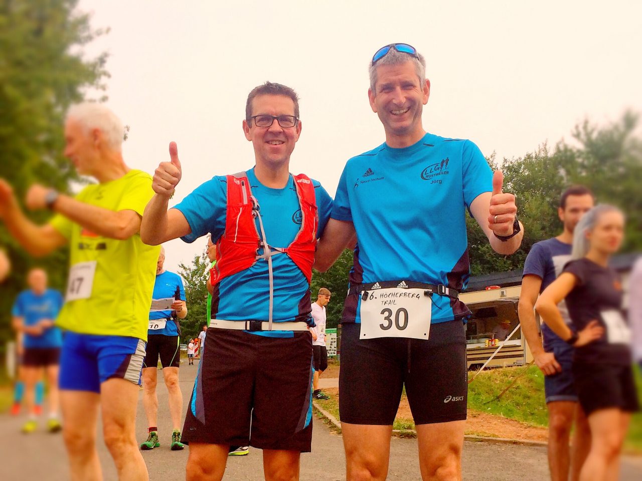 Doppelpodium für Team blau Am Sonntag ging es ab Sportplatz Frankenholz kreuz und quer durch die Wälder. Auf der 10 km Strecke war unsere LLG mit 2 Startern mittleren Alters